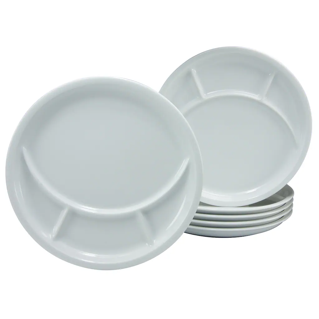 CREATABLE Fondueteller aus hochwertigem Porzellan, universell einsetzbar für Fondue, Raclette, Barbecue und Ihre Grillparty. Durch seinen Durchmesser von 27 cm und eine optimale Einteilung der Flächen, sind sie ideal als Antipasta-Platte, Grillteller, Vorspeisenteller. Durch seine spezielle Bodenkonstruktion platzsparend stapelbar.