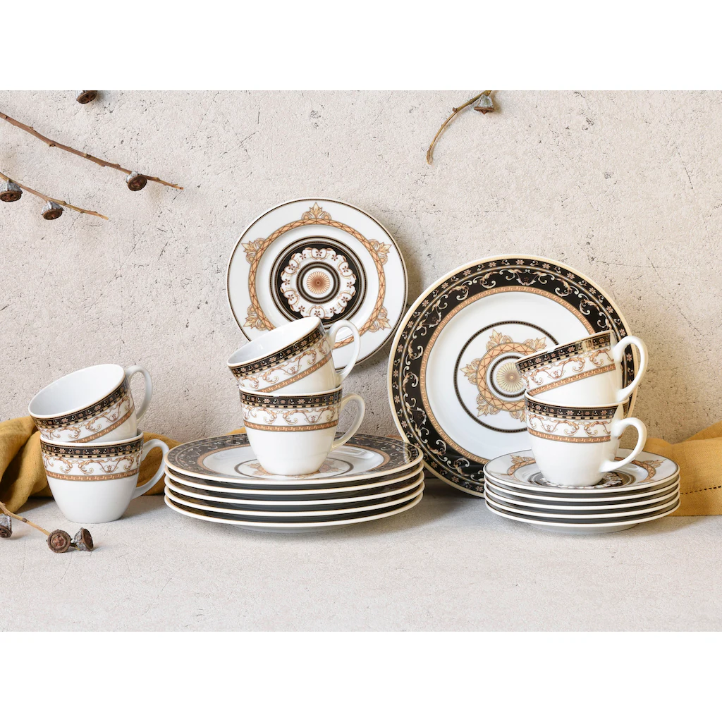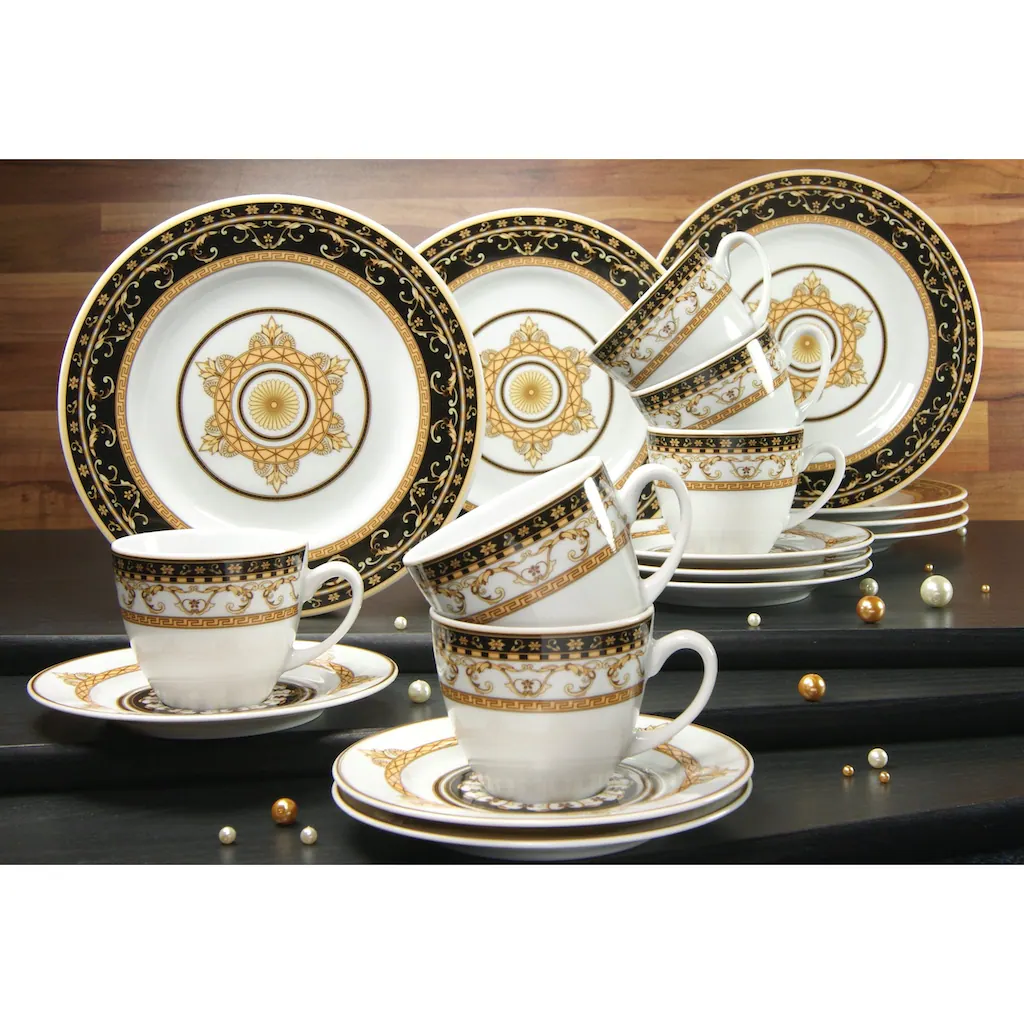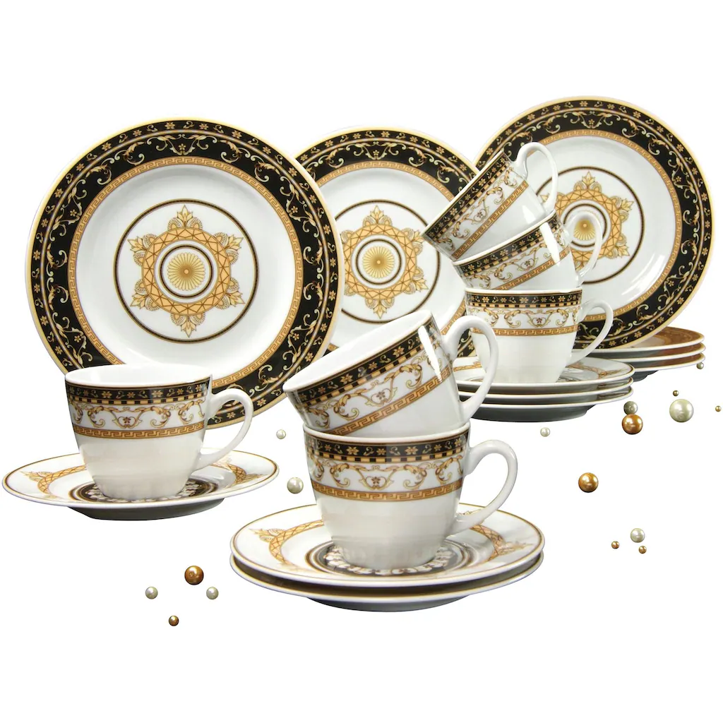 CreaTable Kaffeeservice »Majestosa«, (Set, 18 Tlg., Kaffeegeschirr Für 6 Personen), Service, Dekor Schwarz Abgesetzt, Mikrowellengeeignet