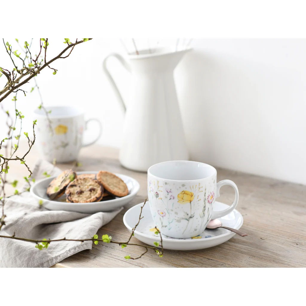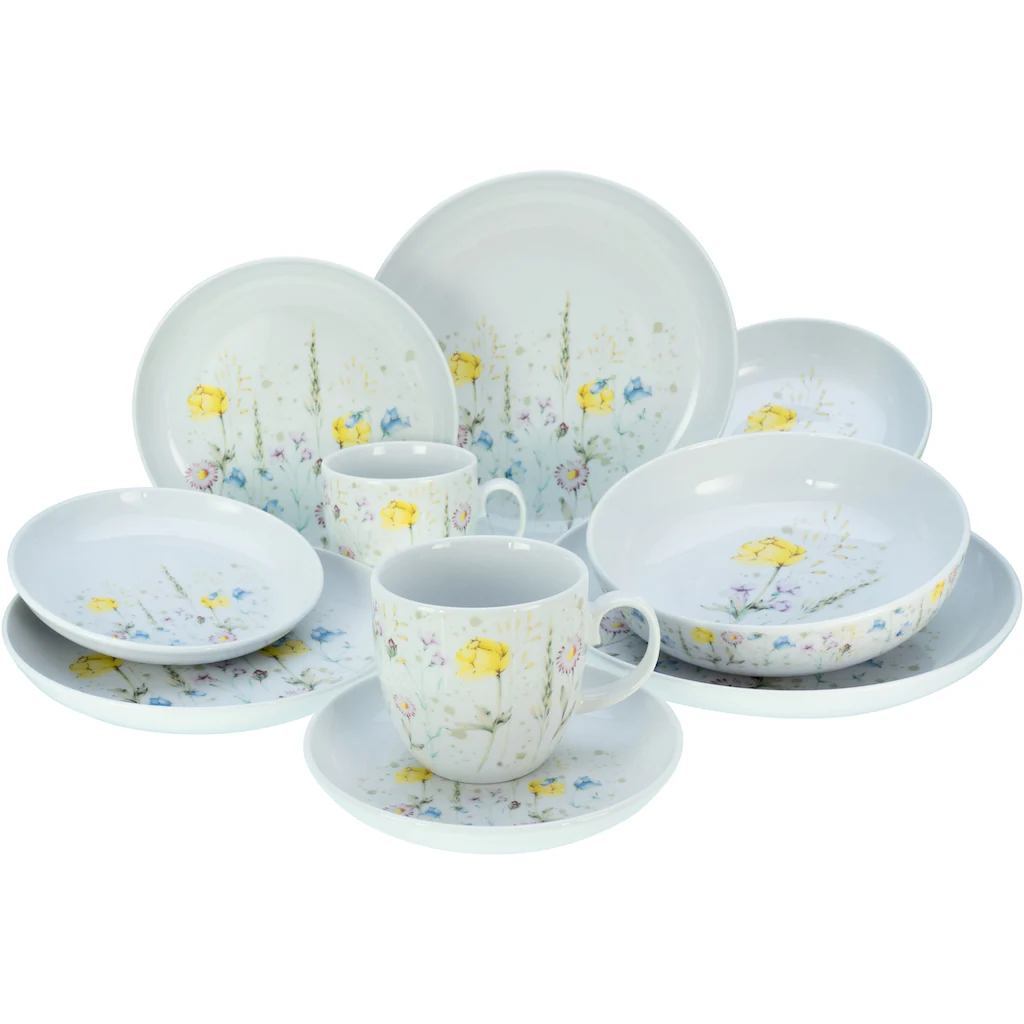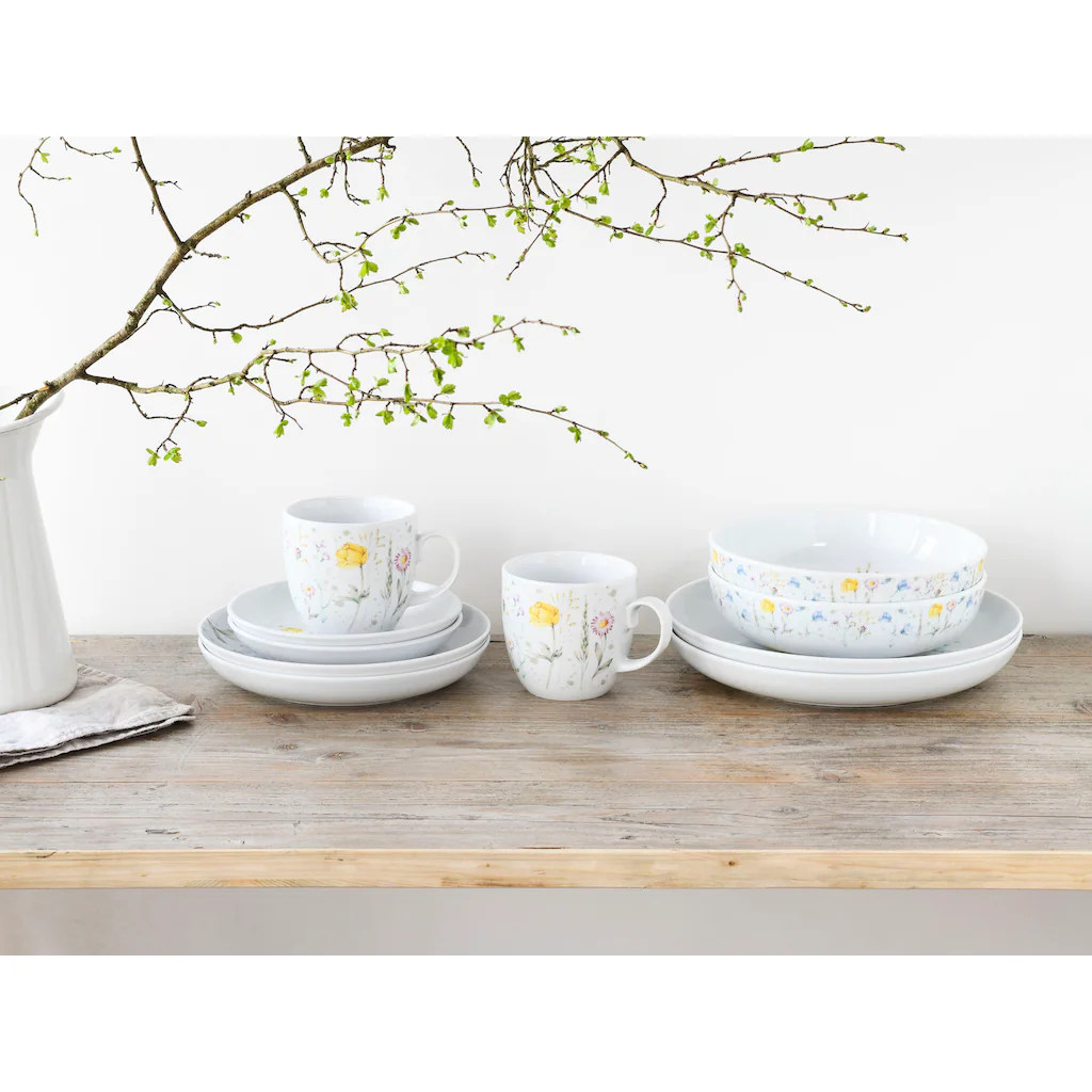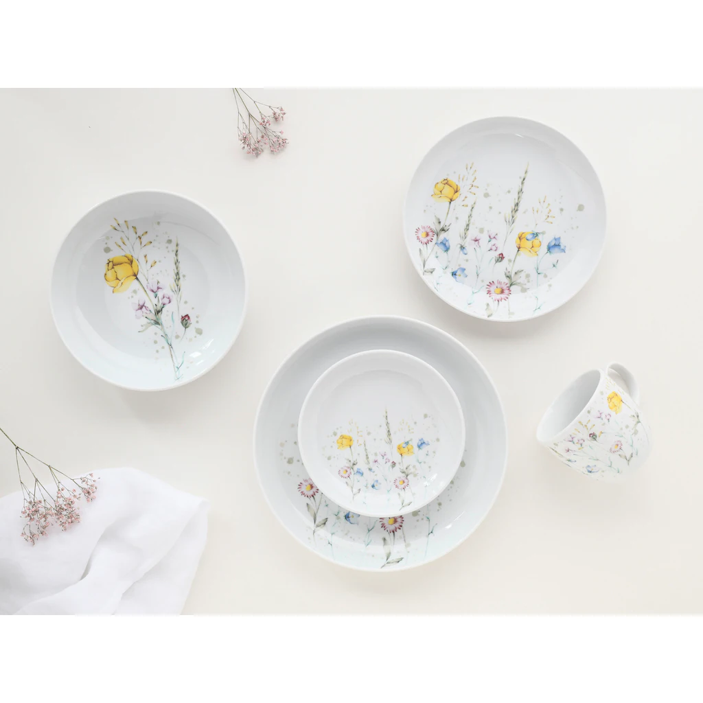 Das außergewöhnliche Porzellan Kombiservice aus feinster europäischer Premiumproduktion überzeugt durch die moderne Formensprache mit einer interessanten Zusammenstellung: Bowls, Riesenbecher und Mehrzweckteller mit höherem Rand sind Wunder der Multifunktionalität. Der Dekor besteht aus Wiesenblumen in fröhlichen und frischen Farben; leicht, fröhlich, zeitlos und mit ländlichem Charme. CreaTable „AllRound“: hier ist der Name Programm!
