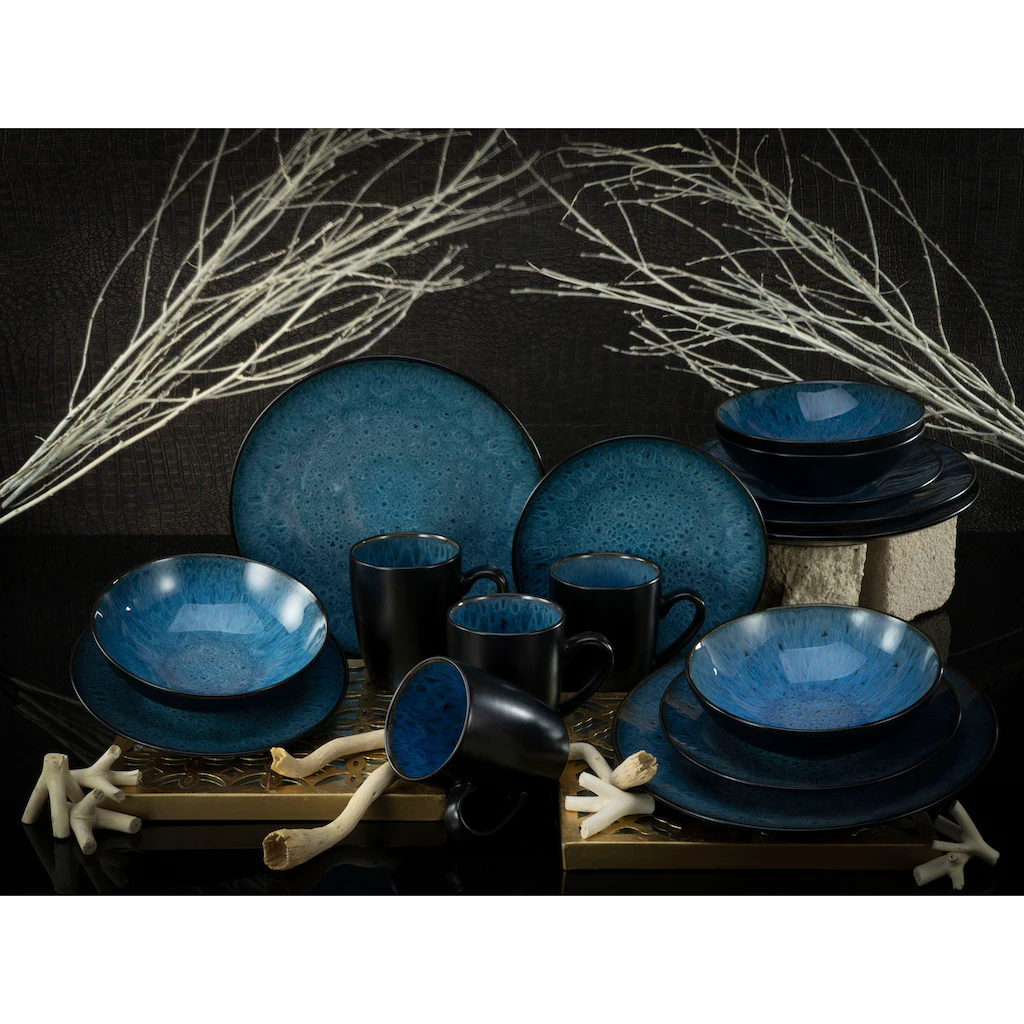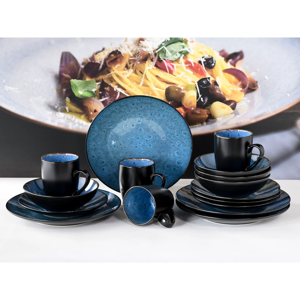 CreaTable Kombiservice »Capri«, (Set, 16 Tlg., Kaffeeservice Und Tafelservice Im Set, Für 4 Personen), Service, Intensiv Blaue Reaktivfarbe, Bicolor
