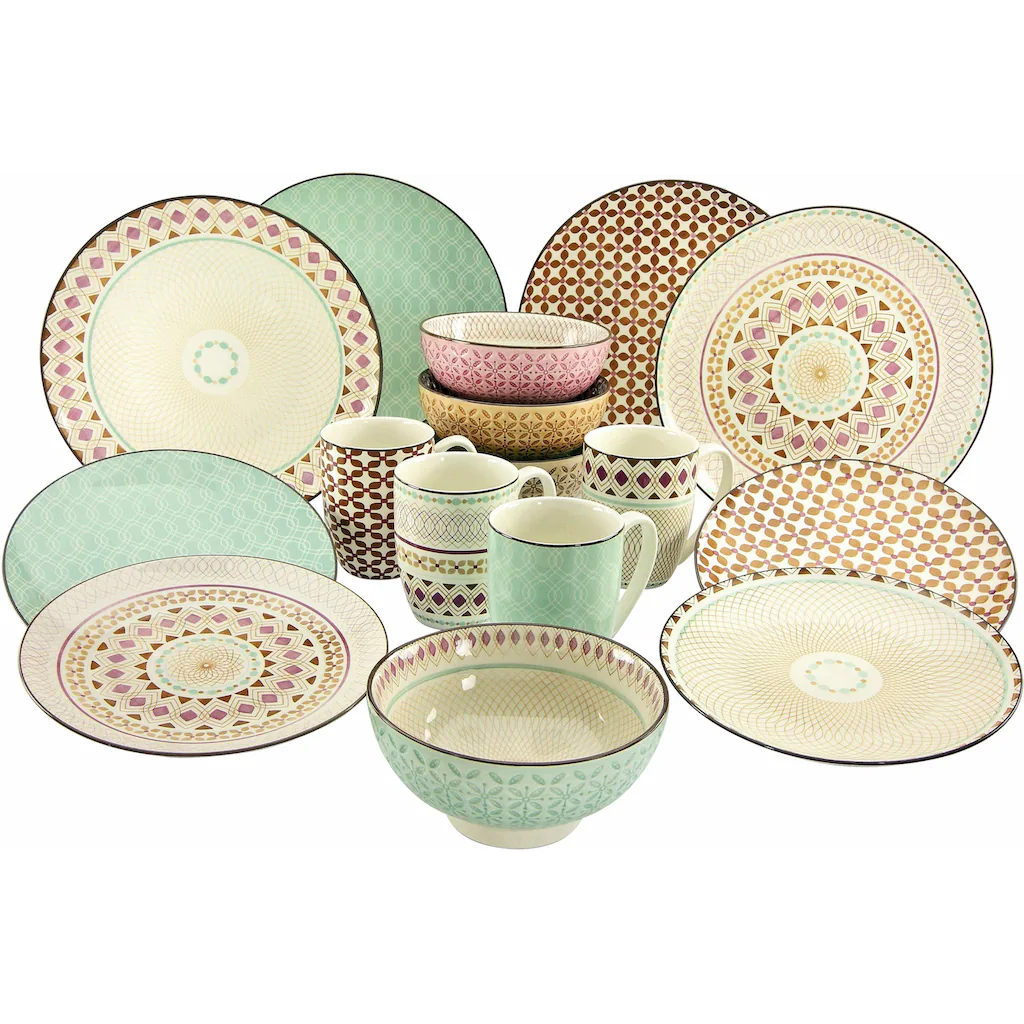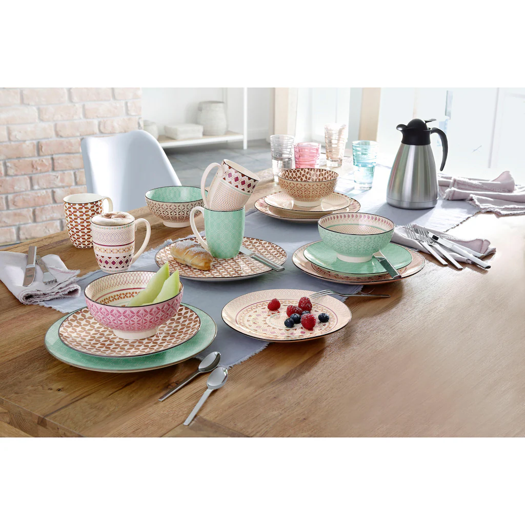 CreaTable Kombiservice »Mandala«, (Set, 16 Tlg., Kaffeeservice Und Tafelservice Im Set, Für 4 Personen), Service, 4 Designs