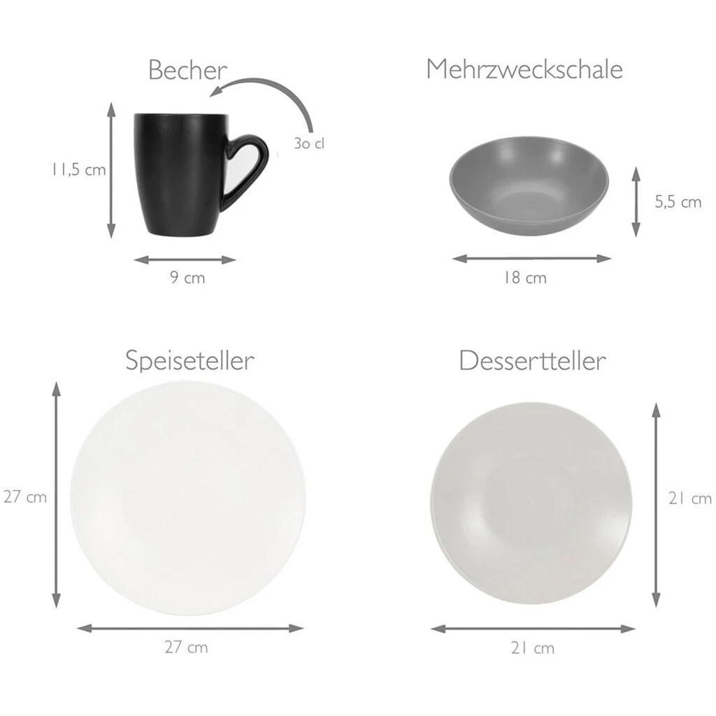 - 4 attraktive Mattglasuren: Schwarz, Grau, Taupe und Creme