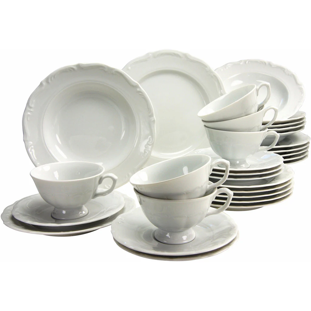 CreaTable Kombiservice »Maria Theresia«, (Set, 30 Tlg., Kaffeeservice Und Tafelservice Im Set, Für 6 Personen), Service, Weiß, Klassische, Traditionelle Form, Mikrowellengeeignet