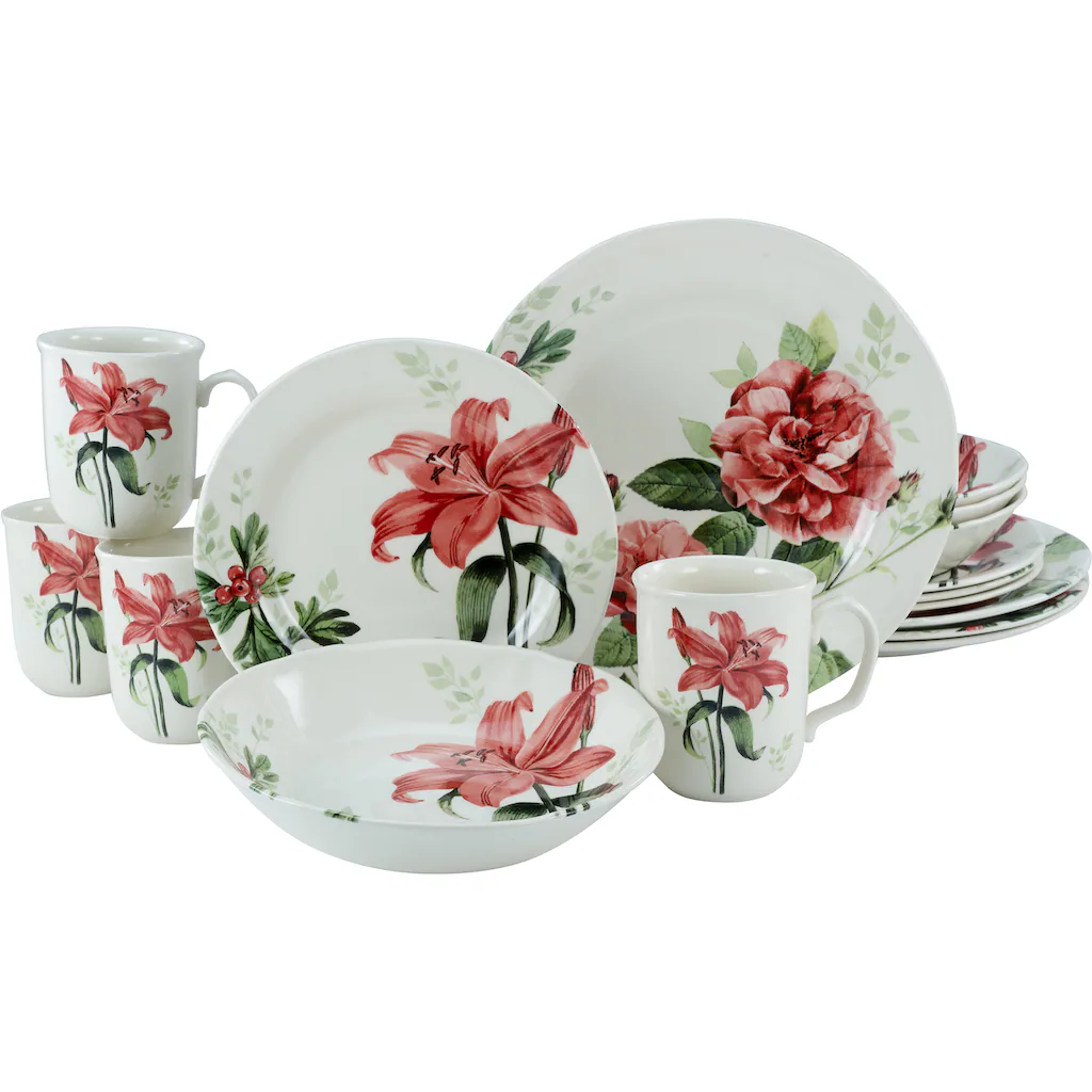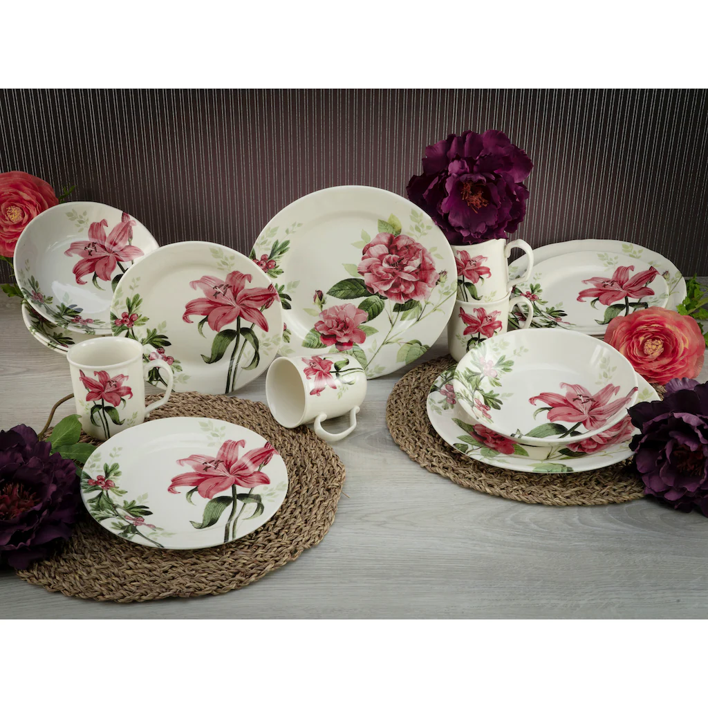 CreaTable Kombiservice »Rosemary«, (Set, 16 Tlg., Kaffeeservice Und Tafelservice Im Set, Für 4 Personen), Service, Rosen/Blumendekor