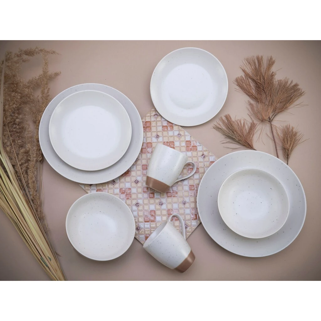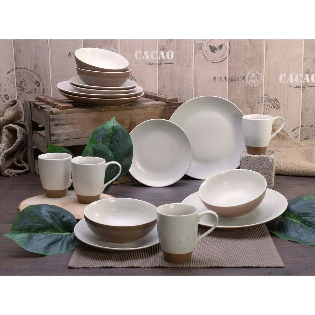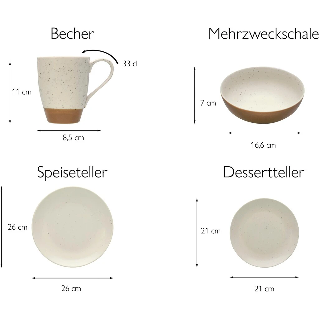 CreaTable Kombiservice »Sand Dunes«, (Set, 16 Tlg., Kaffeeservice Und Tafelservice Im Set, Für 4 Personen), Service, Handwerklicher Töpfercharakter,matte Terracottafarbene Glasur