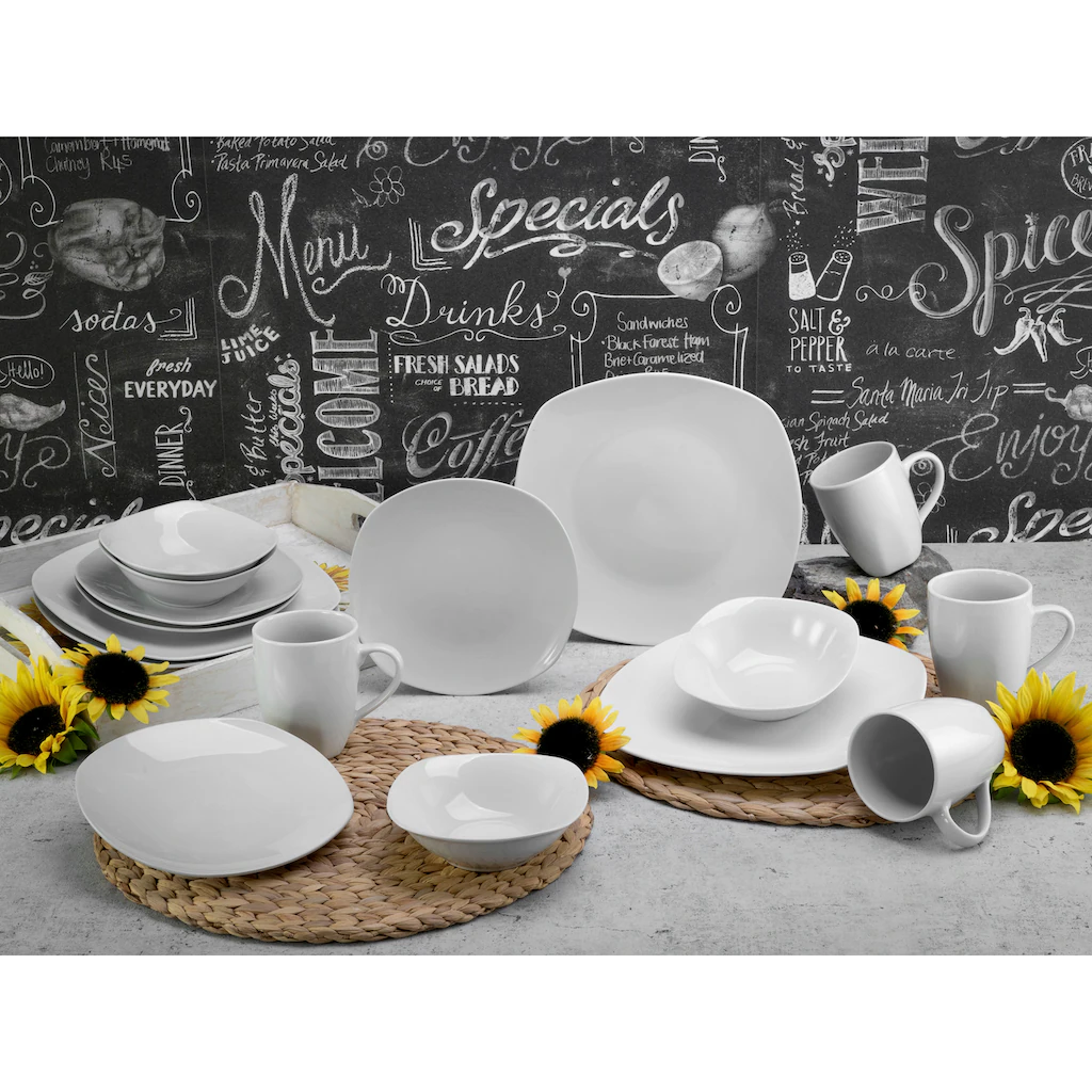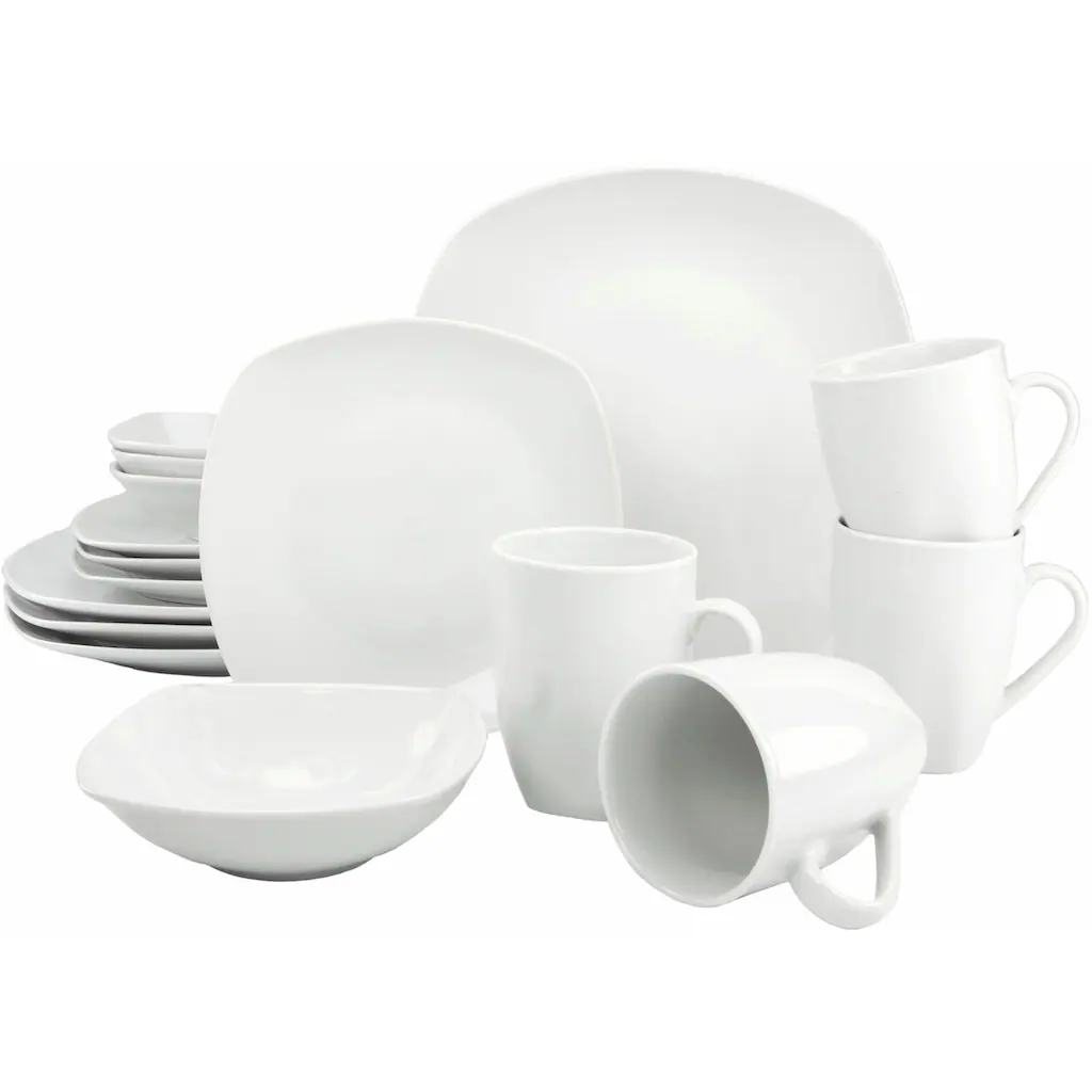 CreaTable Kombiservice »Square«, (Set, 16 Tlg., Kaffeeservice Und Tafelservice Im Set, Für 4 Personen), Service, Weiß, Mikrowellengeeignet