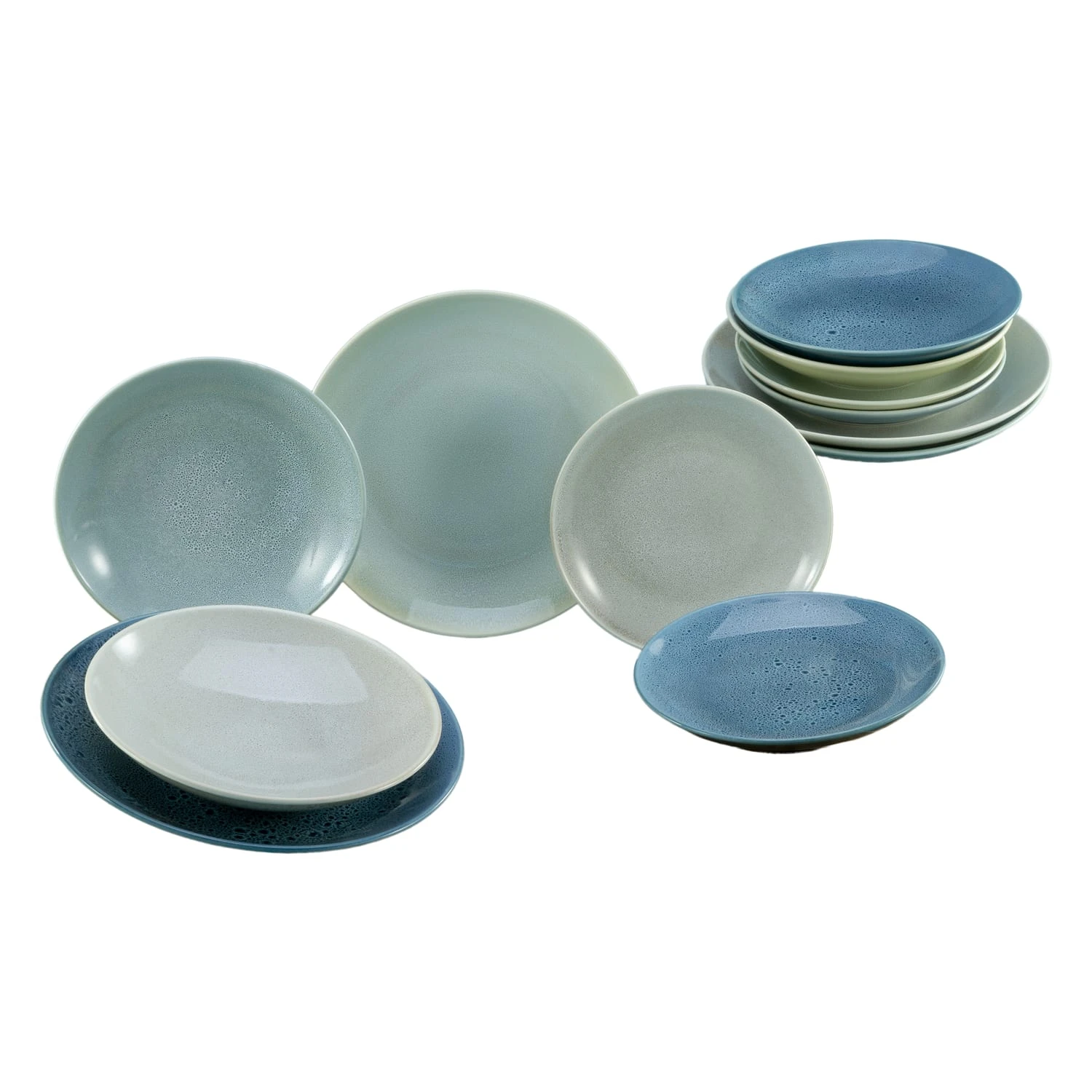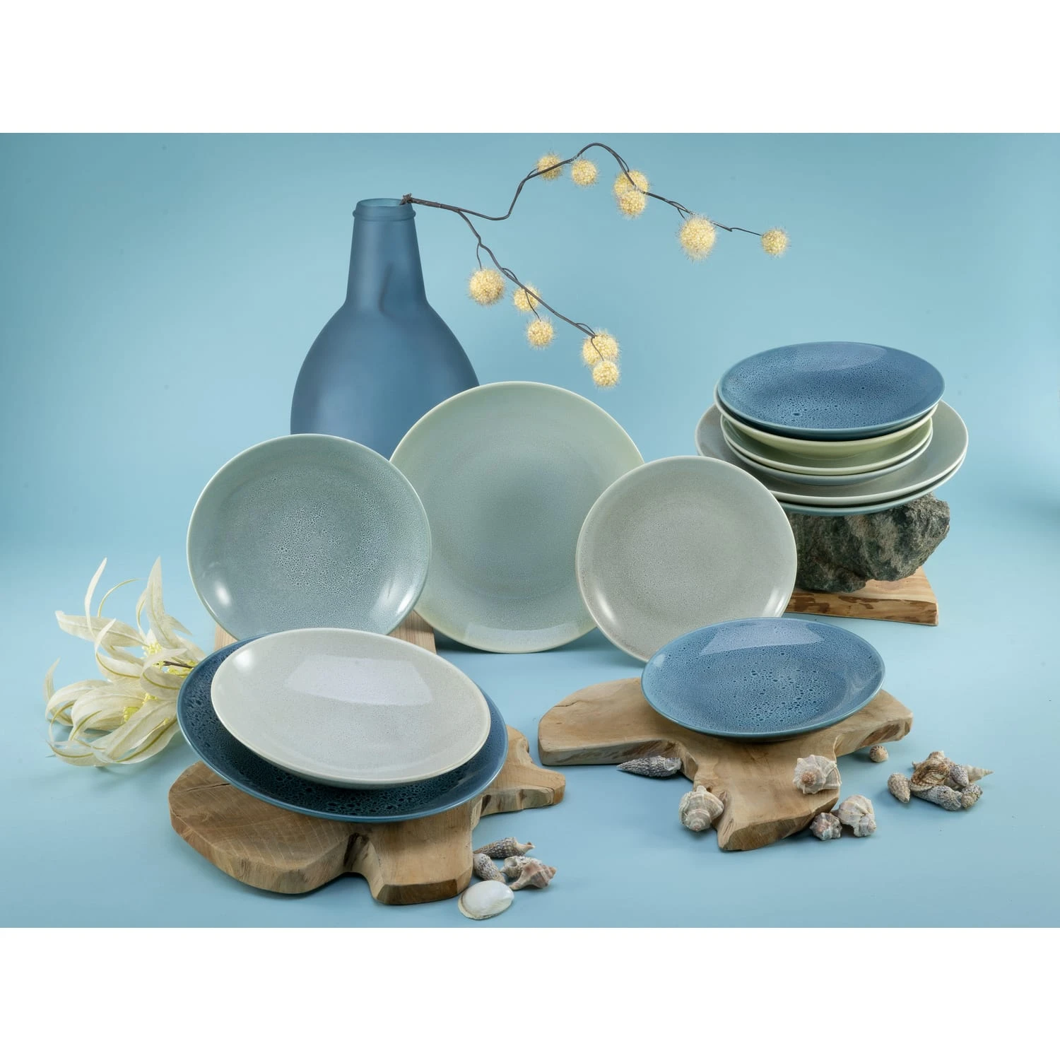 Das Geschirr präsentiert sich in einer nostalgischen Spezialglasur, welche durch die reaktive Bearbeitung unregelmäßig und somit individuell reagiert, d.h. jedes Stück ist ein Unikat.
