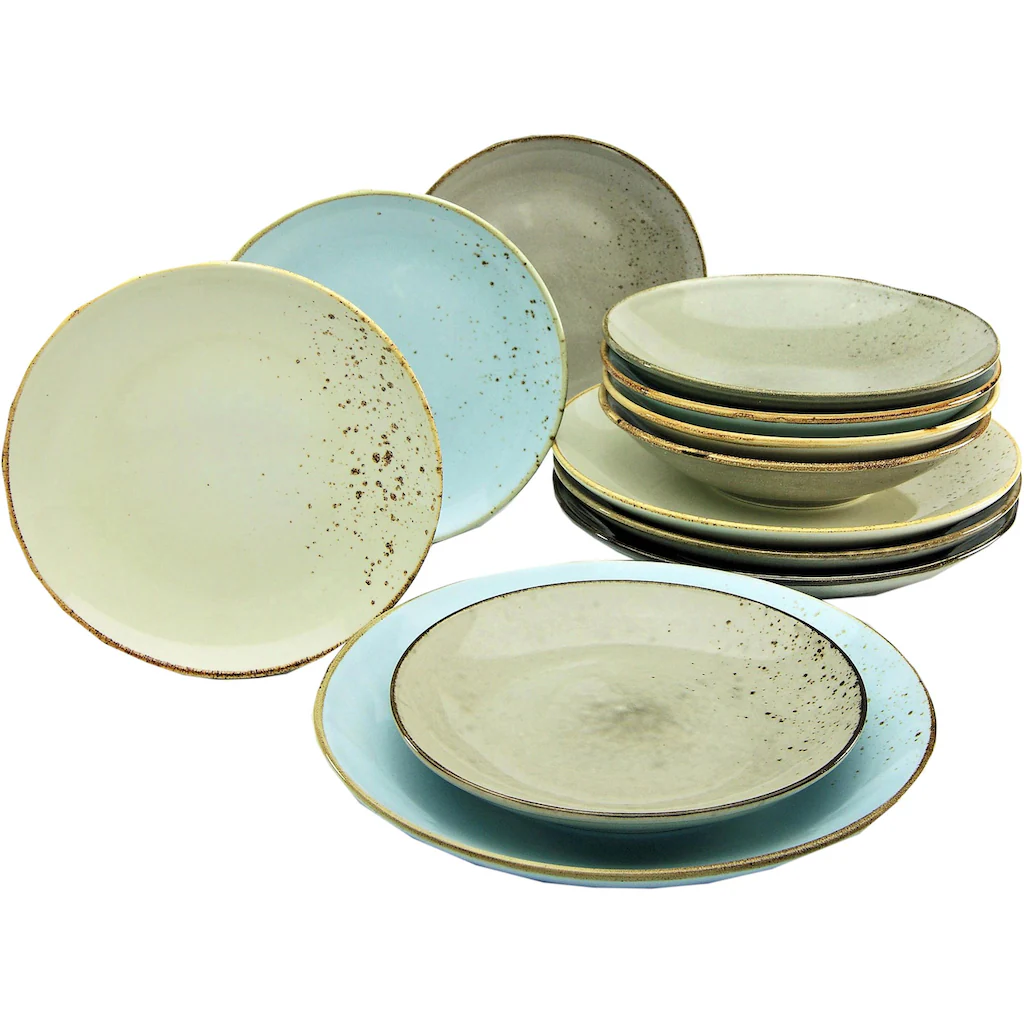 CreaTable Tafelservice »NATURE COLLECTION Scandic«, (12 Tlg., Teller Set Für 4 Personen), Service, 4 Farben Im Set