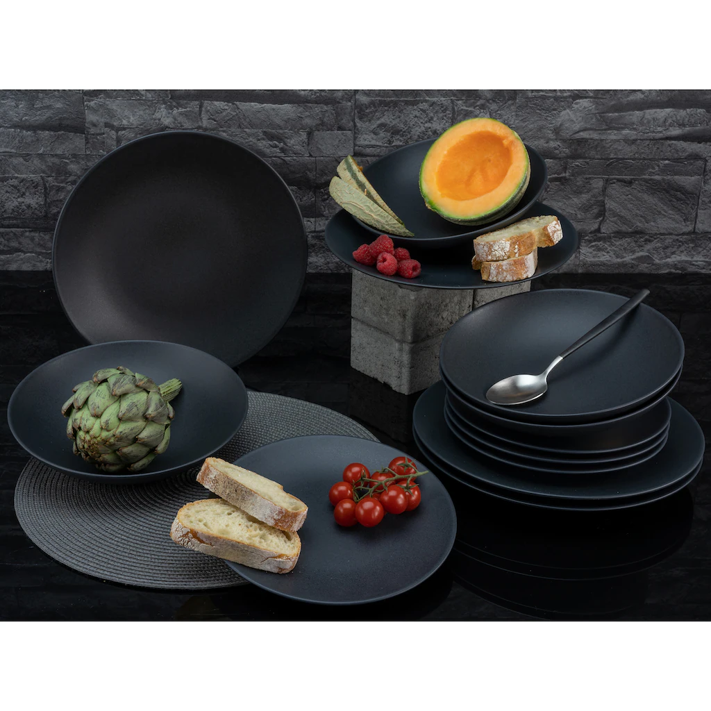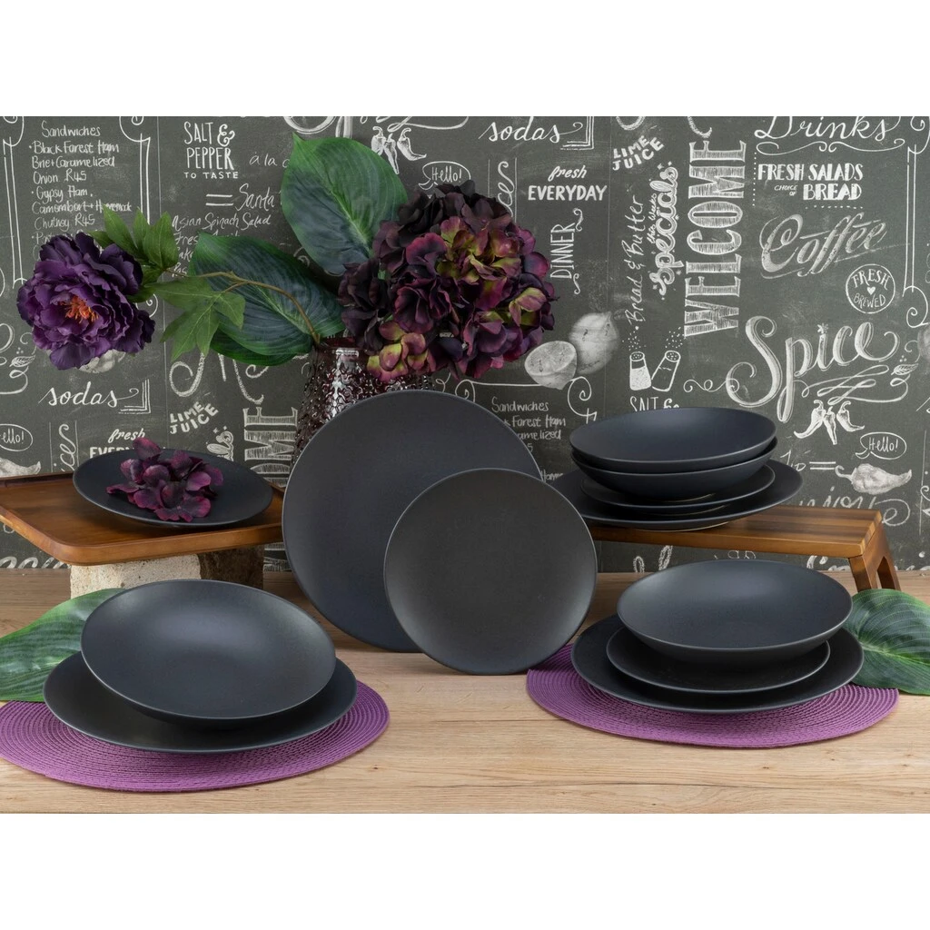CreaTable Tafelservice »Soft Touch Black«, (Set, 12 Tlg., Teller Set Für 4 Personen), Service, Schwarz, Seidenmatte Glasur, Made In Europe