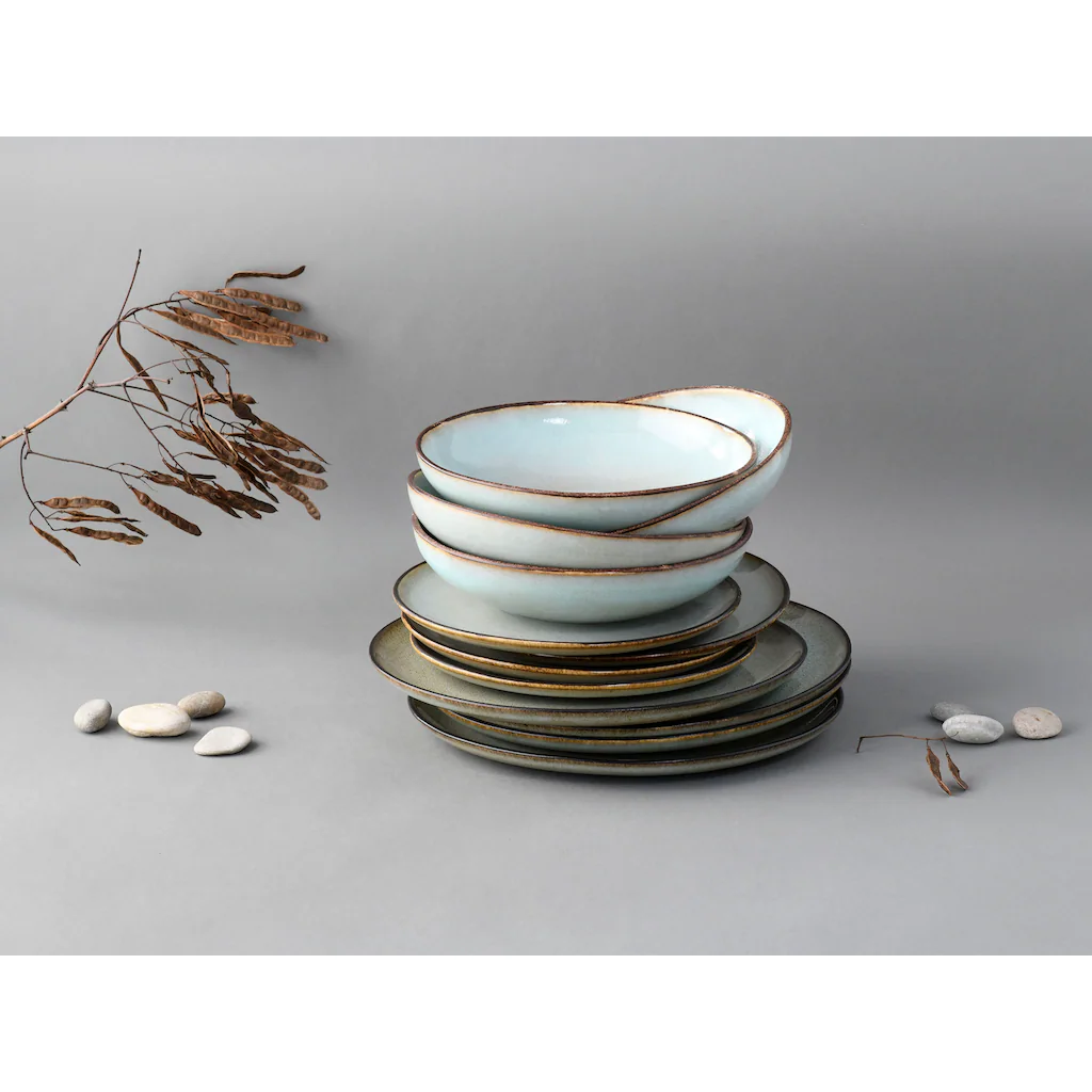 CreaTable Tafelservice »Stone Town«, (Set, 12 Tlg., Teller Set Für 4 Personen), Service, Organische Form, Widerstandsfähige Glasur, Handmade Charakter