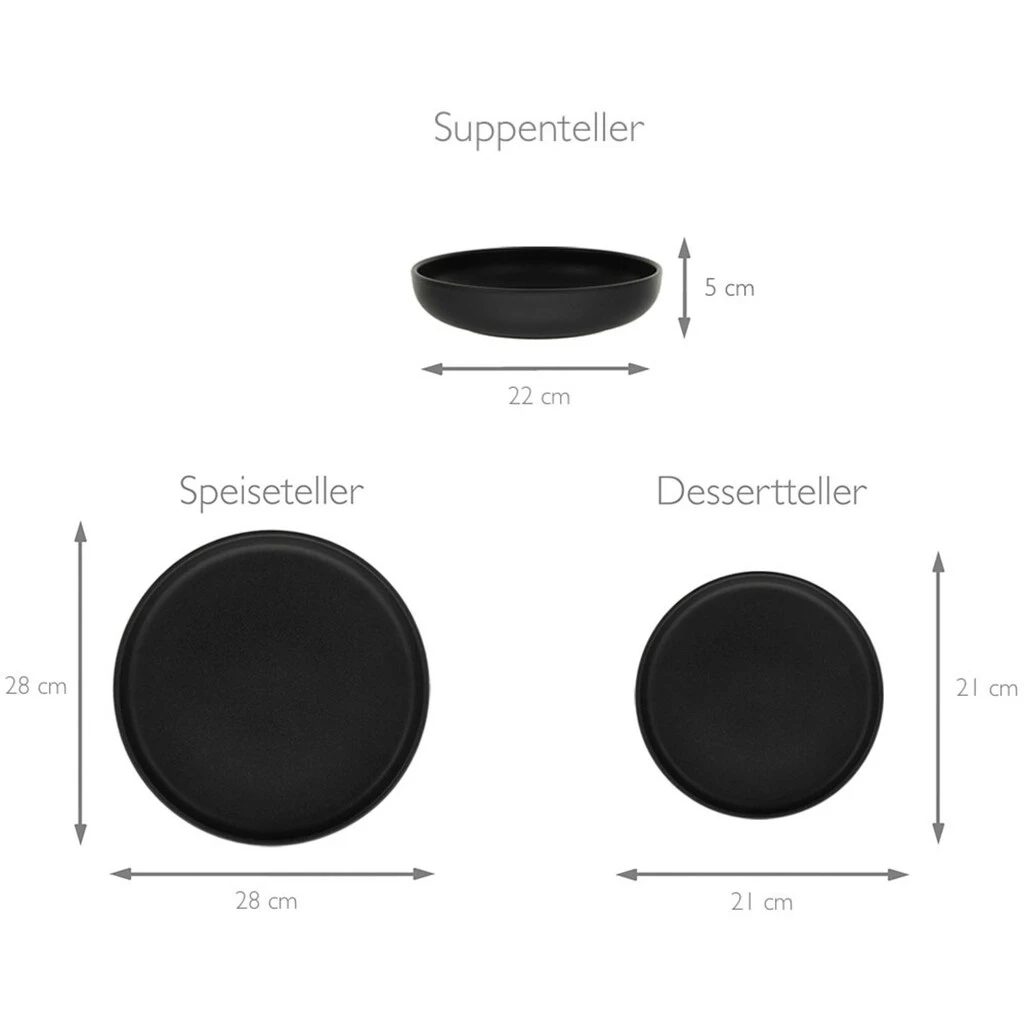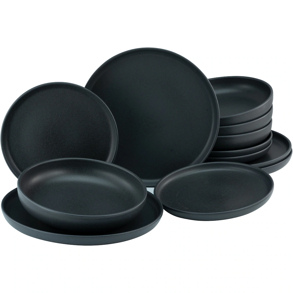 CreaTable Tafelservice »Uno Black«, (Set, 12 Tlg., Teller Set Für 4 Personen), Service, Schwarz, Mit Seidenmatter Spezialglasur, Made In Europe