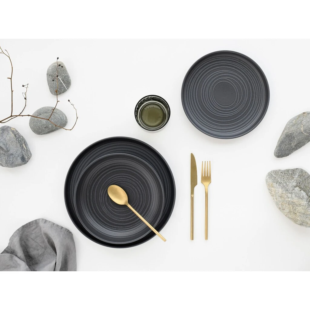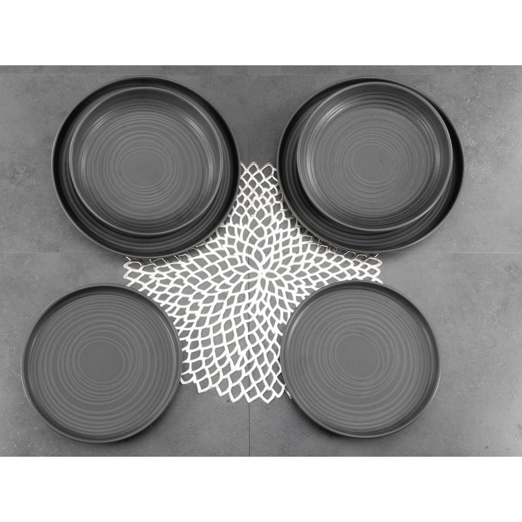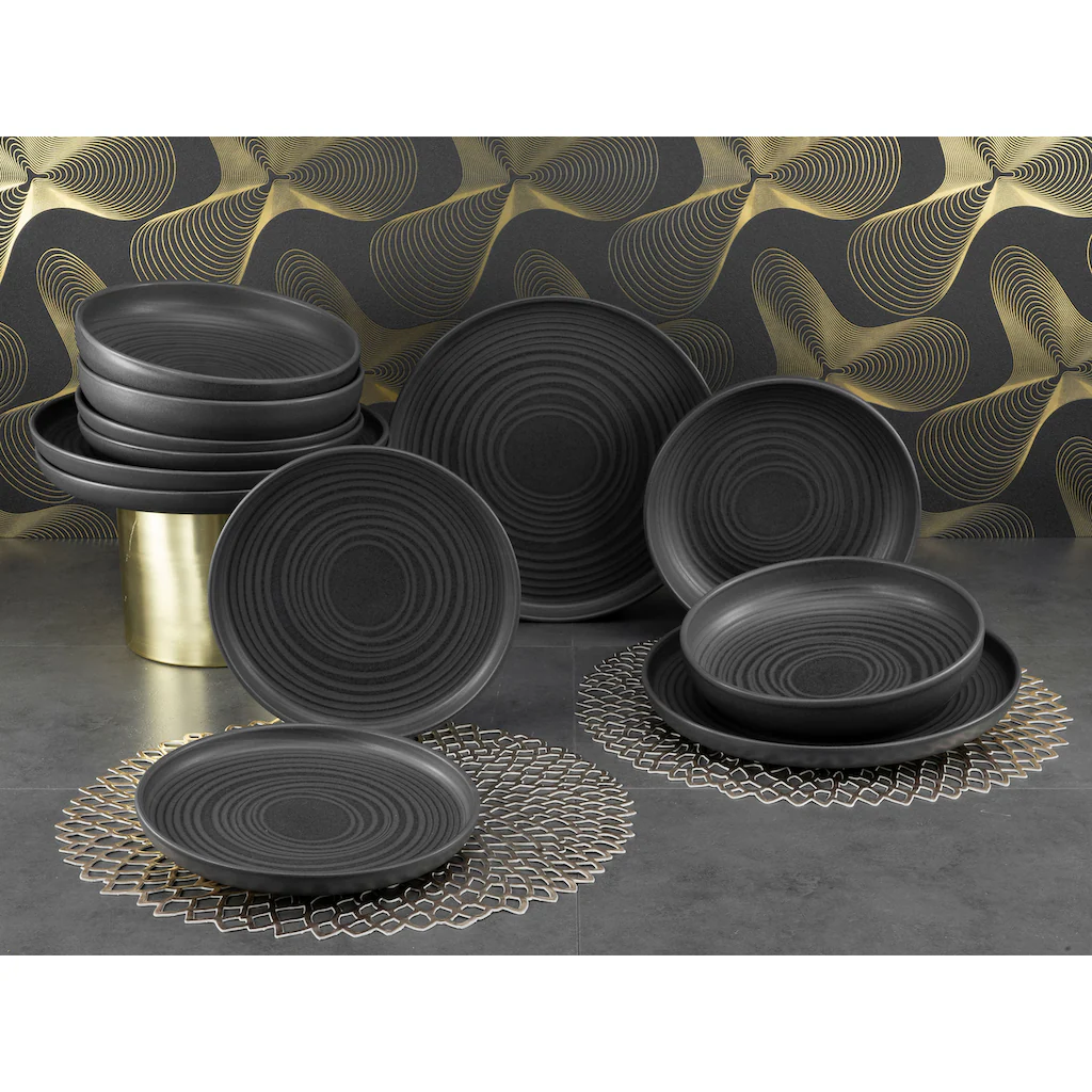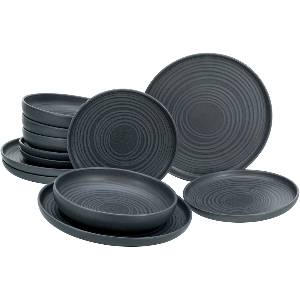 CreaTable Tafelservice »Uno«, (Set, 12 Tlg., Teller Set Für 4 Personen), Service, Schwarz, Seidenmatte Spezialglasur, Ausdrucksstarkes Relief