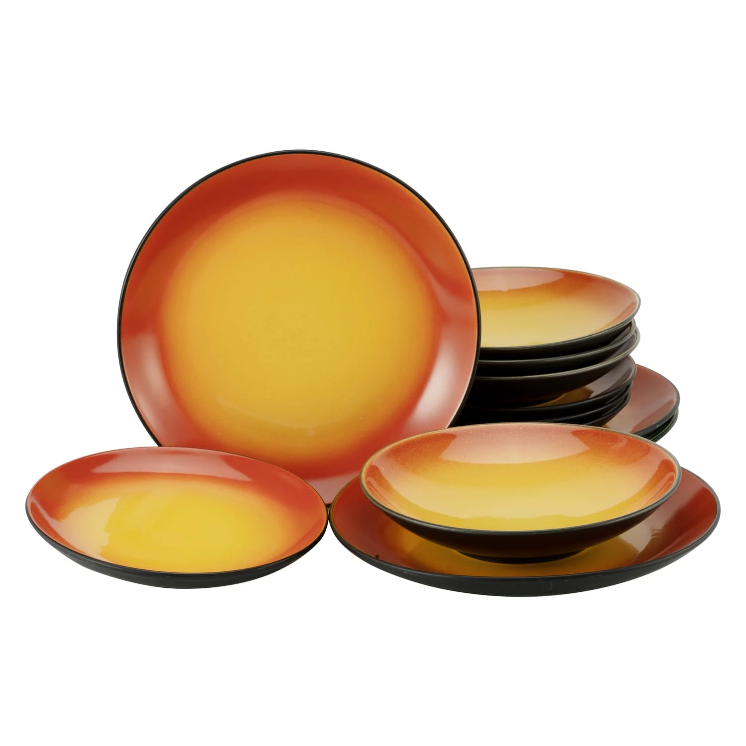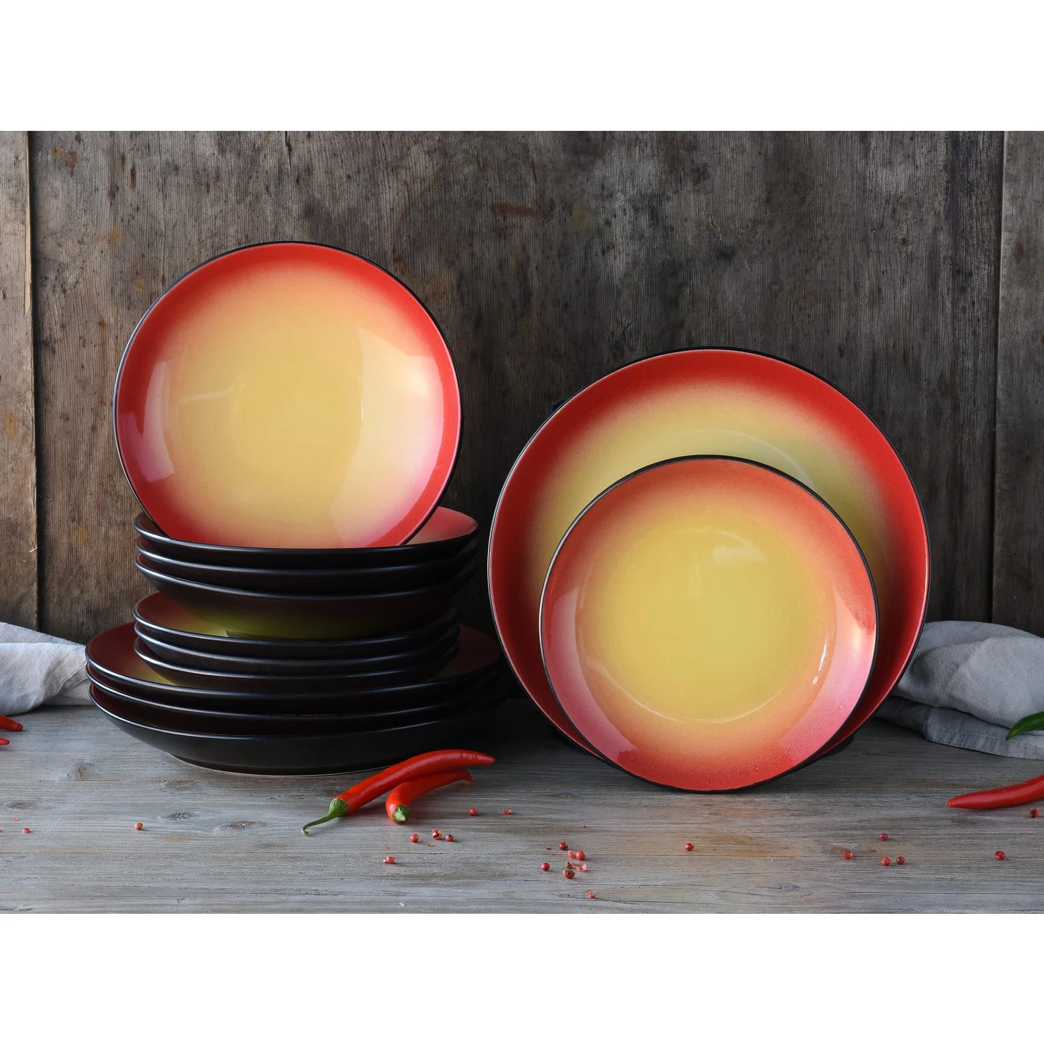 Dieses Set aus hochwertigem Steinzeug besticht durch seine außergewöhnlich intensive, rote Farbgebung in Verbindung mit einer hochaktuellen Coupeform.
