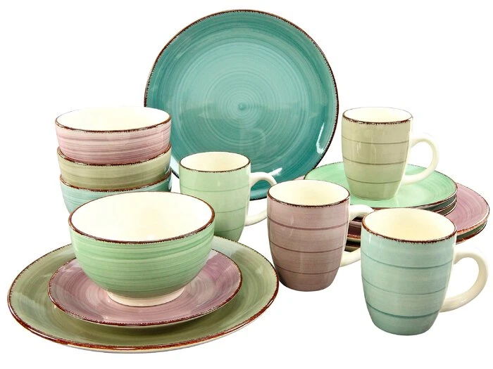 - Je 4 Speiseteller 26 cm, Suppenteller 21 cm, Frühstücksteller 19 cm, Kaffeebecher 300 ml, Müslischalen 14,5 cm