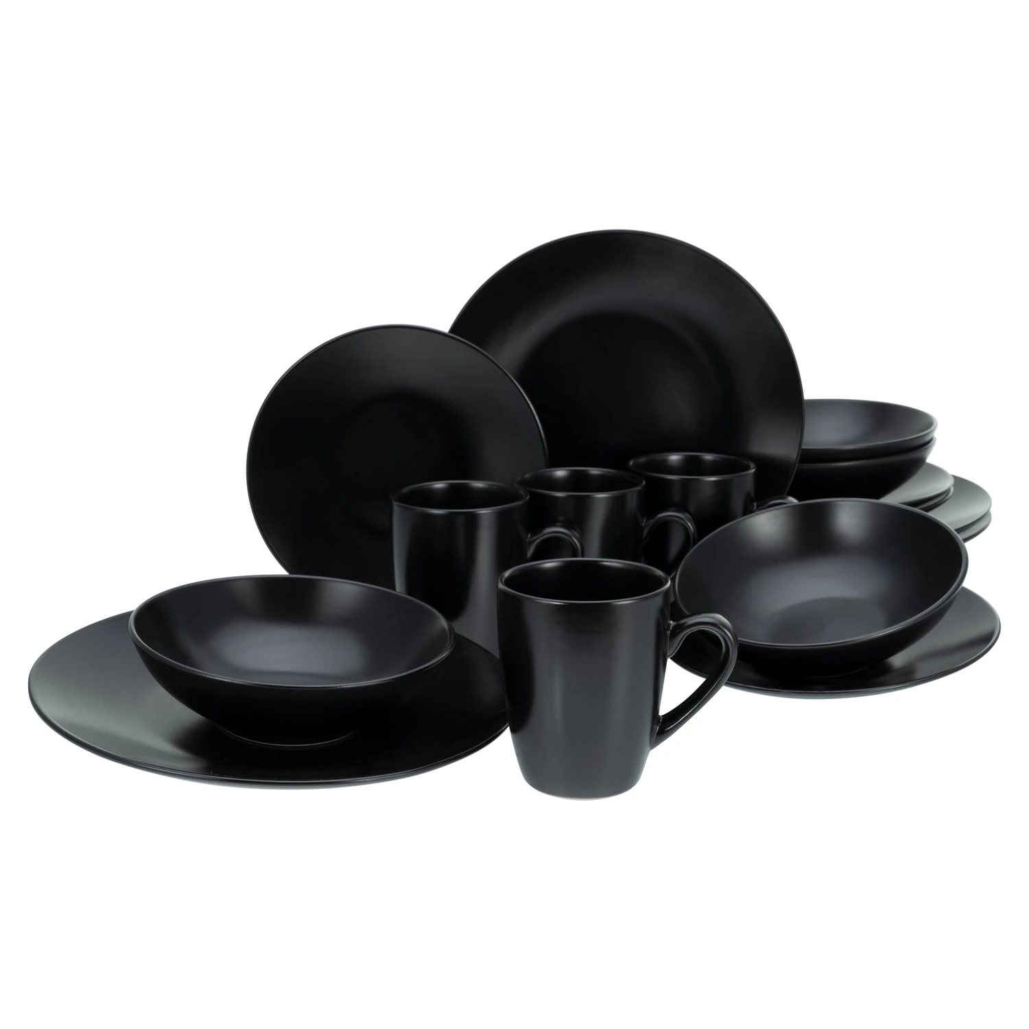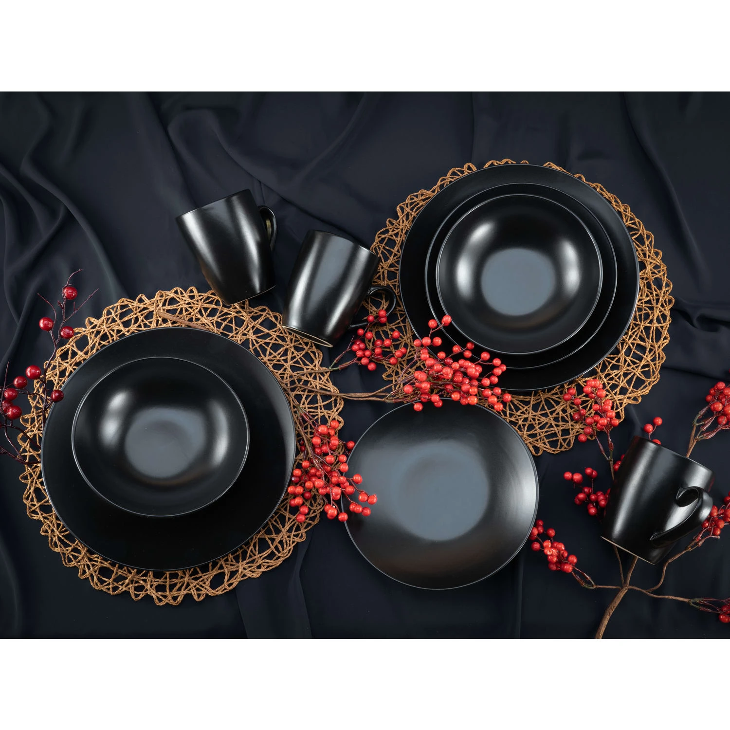 Das Geschirr präsentiert sich in einem hochwertigen Steinzeug, in einer absolut trendigen schwarzen Mattglasur.