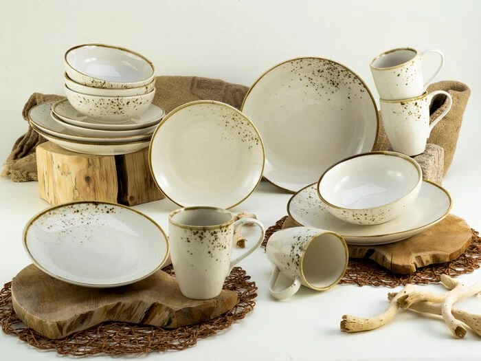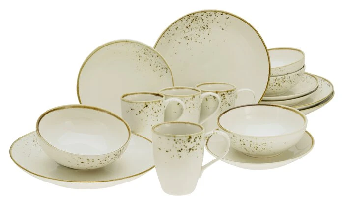- Je 4 Speiseteller Ø 27 cm, Dessertteller Ø 21 cm, Müslischalen Ø 16,5 cm, Kaffeebecher 300 ml
