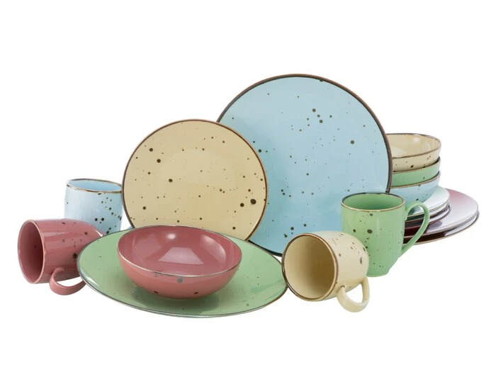 - Artikel beinhaltet je 4x Speiseteller Ø 28 cm, Frühstücksteller Ø 21 cm, Müslischale Ø 16 cm, Kaffeebecher 320 ml